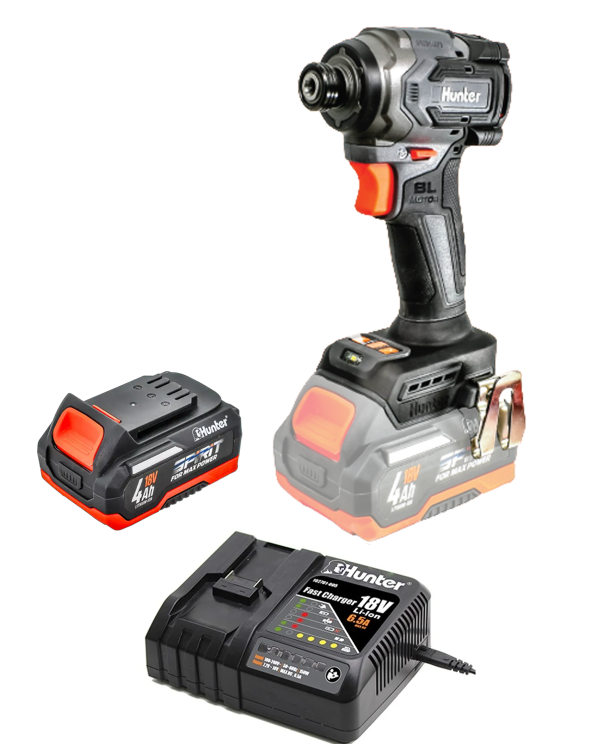 מברגת אימפקט בראשלס קומפקטית + סוללה 4.0AH HUNTER